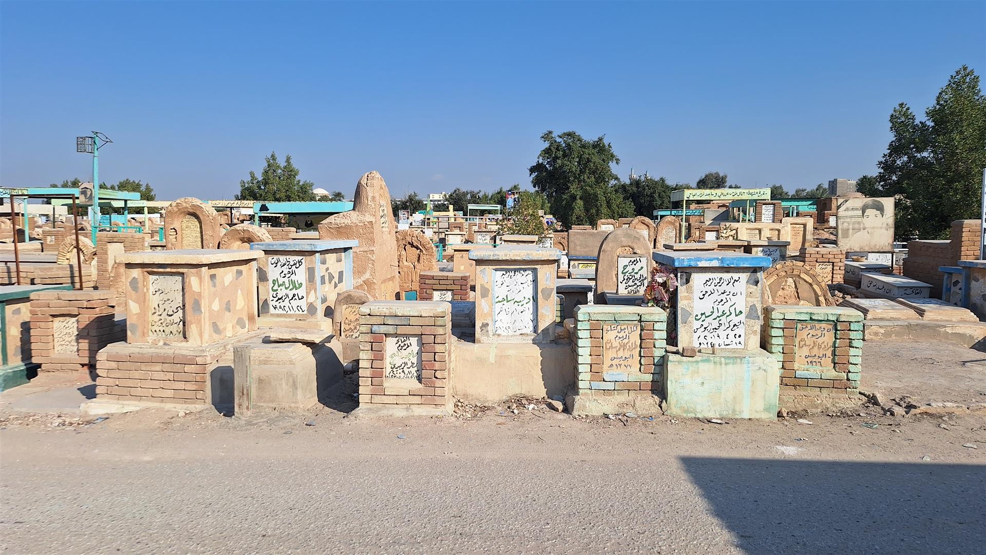 I walked up to the Wadi Al-Salaam cemetery. Reckoned to be the largest in the world, it holds 6 million graves across six square kilometres. Many are in 50 person catacombs. I walked around and took some photos. I walked past a young man who gave me some cakes. An older couple tried to give me some fruit. I guessed it was part of an obligation to do this kind of thing during a visit. Pilgrims visit as well as relatives. It’s a much desired place to be interred, especially given that it’s also Imam Ali ibn Abi Talib’s burial place.