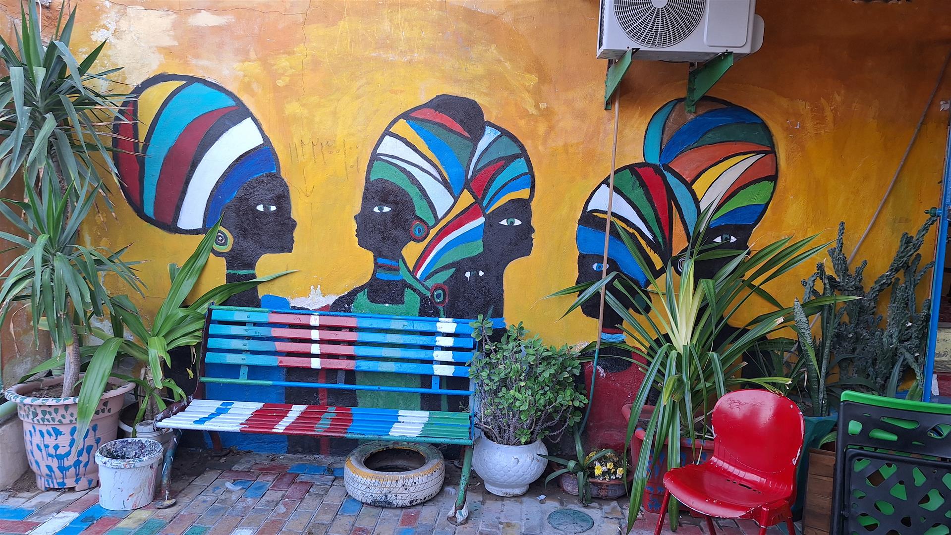 I wandered around the area of the edifice and could see it was an older part of the city. I was intrigued to find lots of wall art, mostly with an African tribal theme. Very interesting but puzzling as to why it was there.