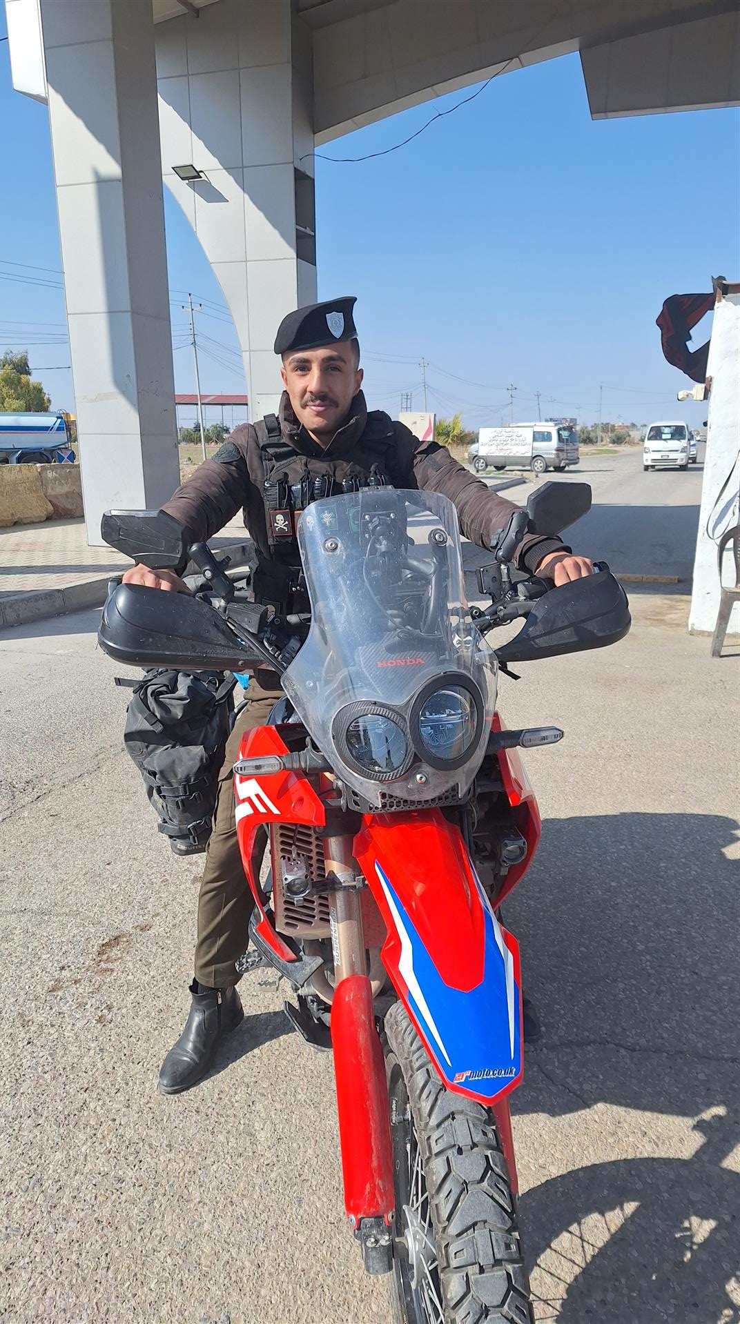 While waiting I was chatting (via Google) to one of the officers. He rides a Harley and is in Bond MC, which he said was an international motorcycle club. I asked him which regiment he was – 5th regiment, 2nd division. I also asked him what the danger to me was that necessitated an escort, and he said that Da’esh were still active around there. Only occasionally, but enough for the army to take the threat seriously and to look after travellers, who are at risk of kidnapping. He said there had been quite a lot coming through, including on bikes.