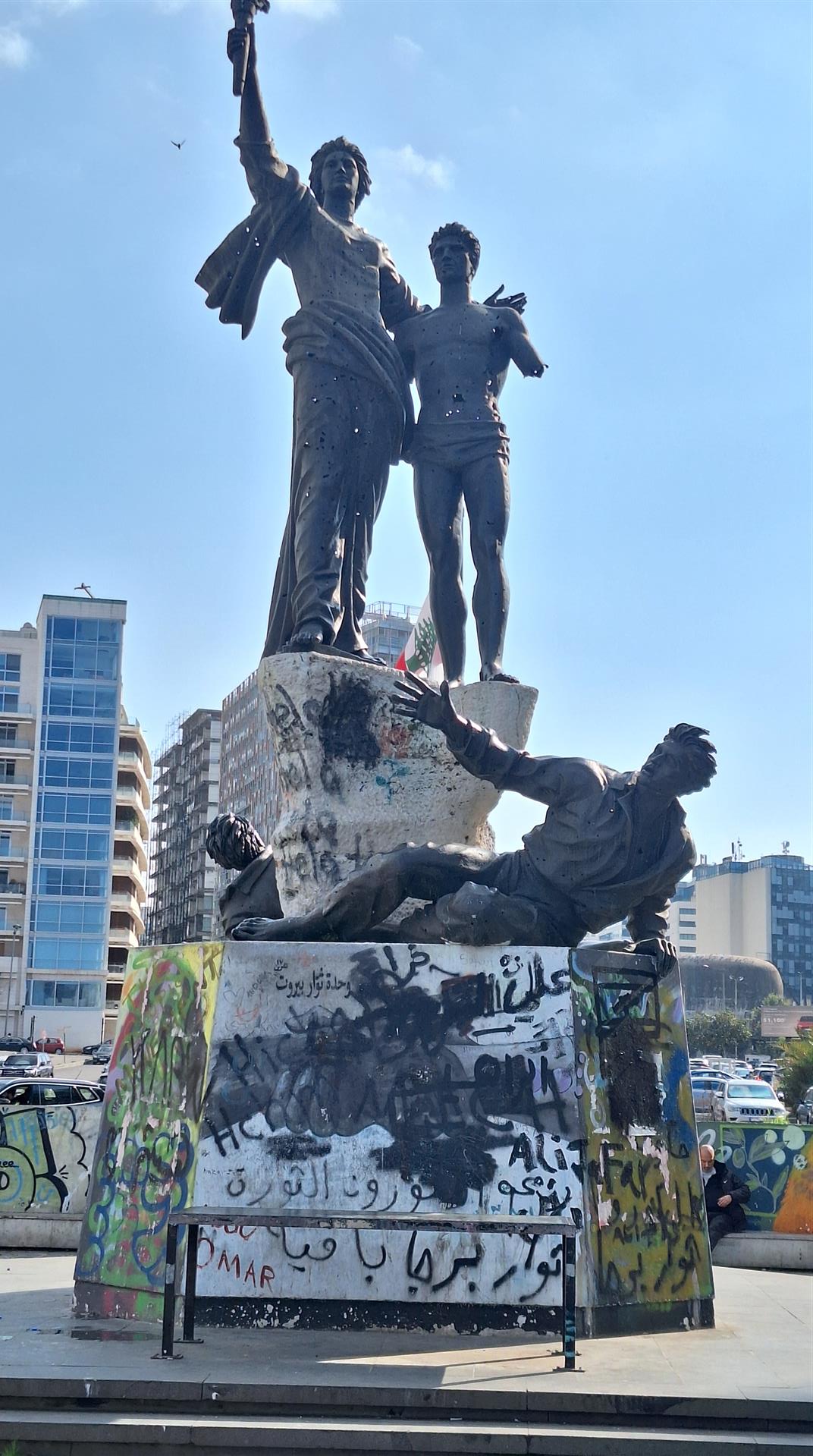 I took a couple of photos of a smaller mosque but without going in. In Martyrs Square there’s a statue to some nationalists whom the Ottomans executed in 1916. Ironically, the figures are full of bullet holes.