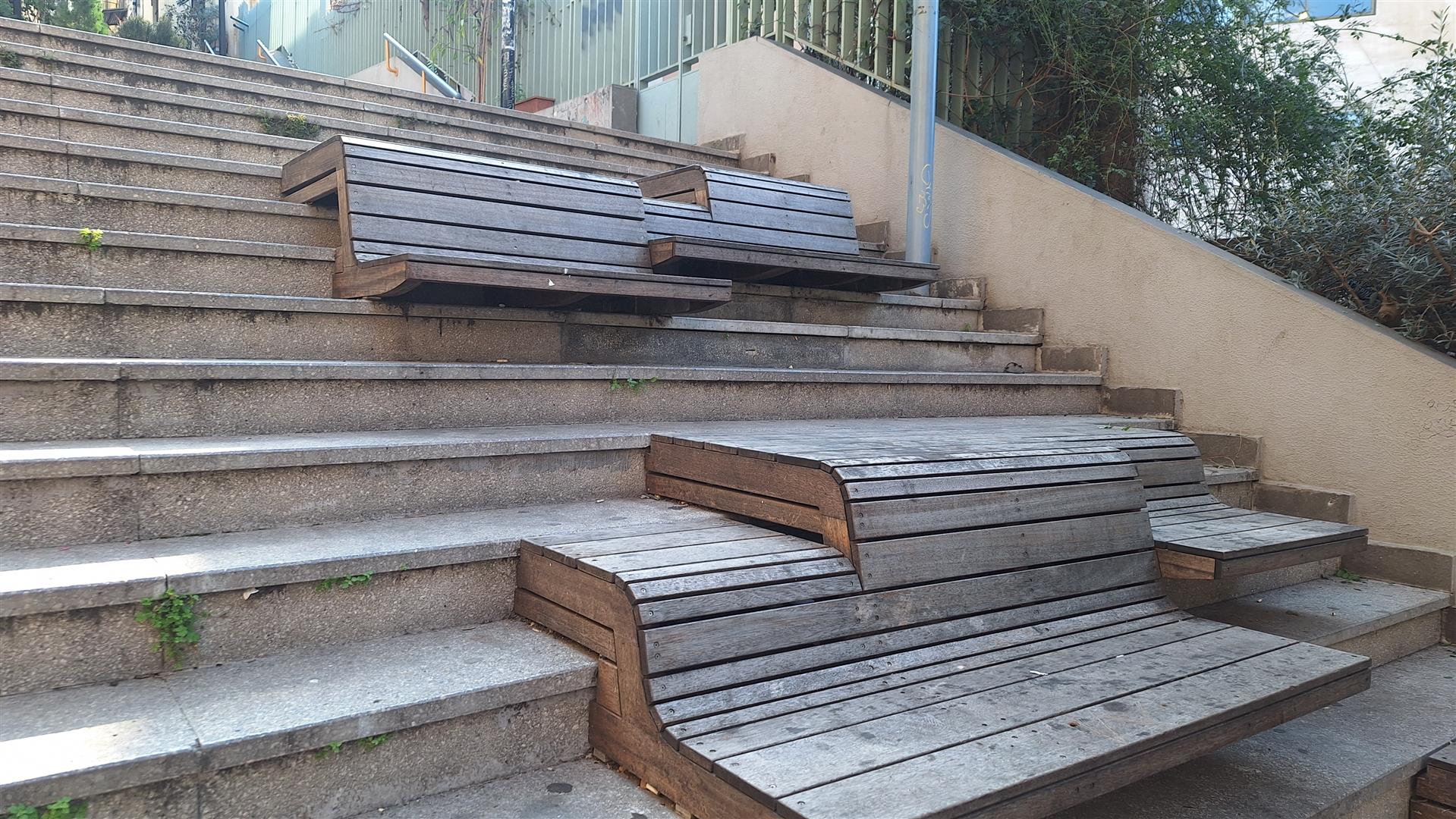 The Nicolas Sursock Museum, displaying contemporary art was closed. So it was a long walk back to the hostel, fortunately going down the steps I’d climbed up. There were a lot of them. I was intrigued by the way they’d built seats onto the steps themselves. A great idea for the weary of limb.