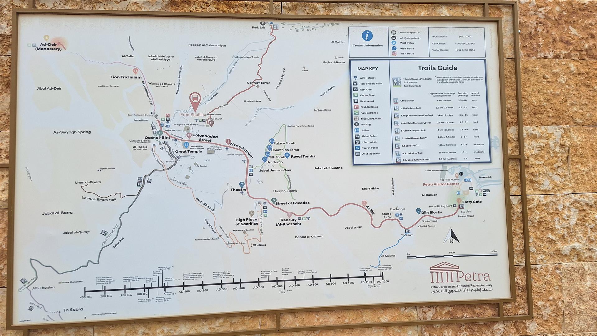 From Shobak Castle I rode to the Petra visitor centre in the town of Wadi Musa. I got hold of a map of the site. It was BIG, with some long walks needed to get to some of the places. I made plans for three different visits, to different sections, including to the monastery, which was a long way up in the hills.