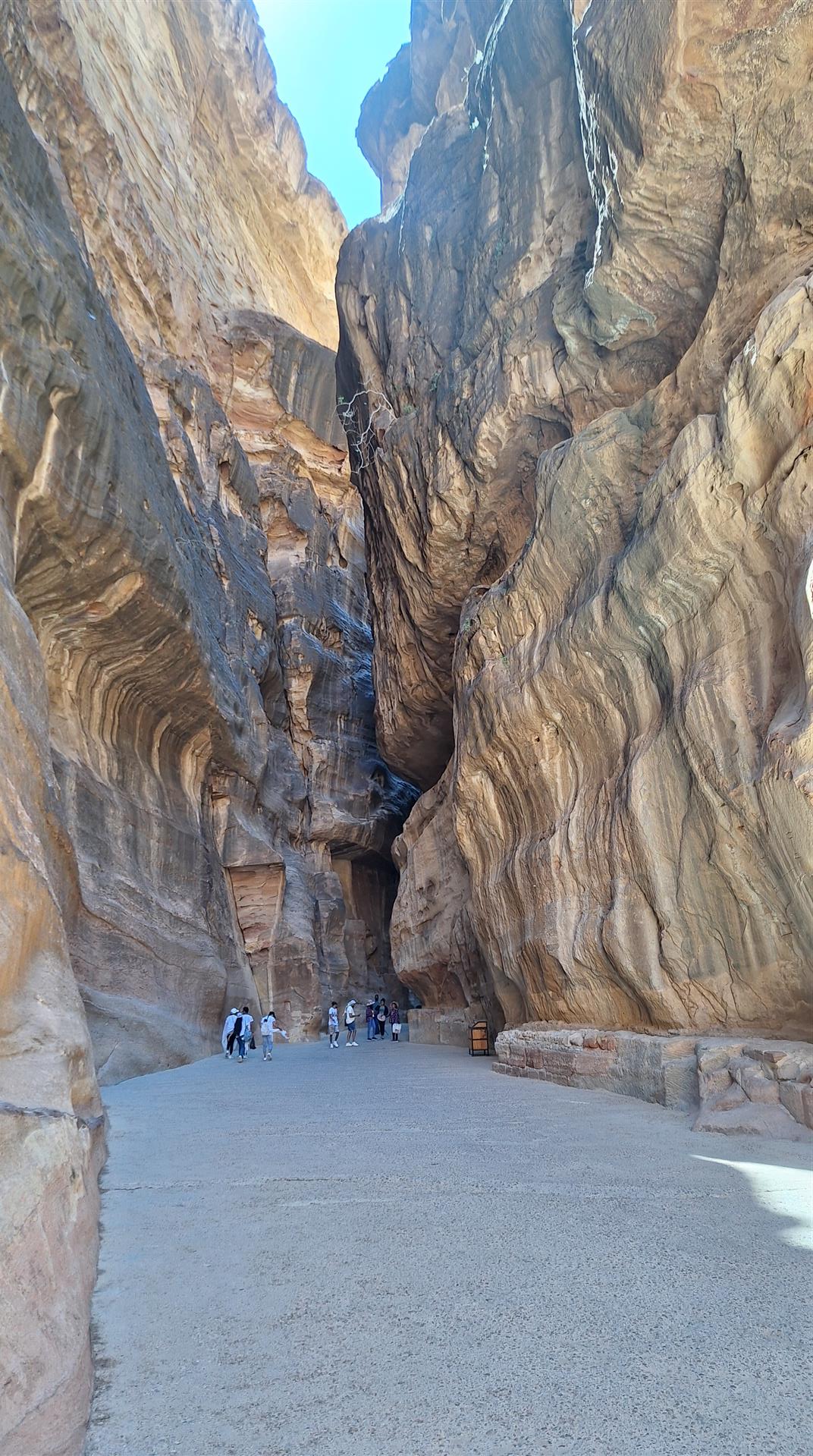 The next place was Khazali Canyon, a very narrow cleft in the rock where we saw some writing and pictures carved into the rock face. Some of it was Nabateen but the drawings pre-date that era.