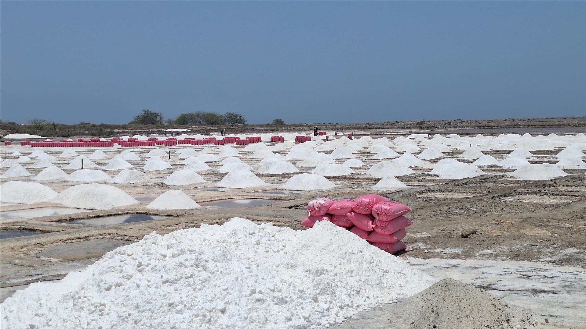 These were very well laid out, in small, square pools. There were guys raking in the salt and piling it up along the sides of them. When dried it was bagged and taken away. All very industrious and well organised.