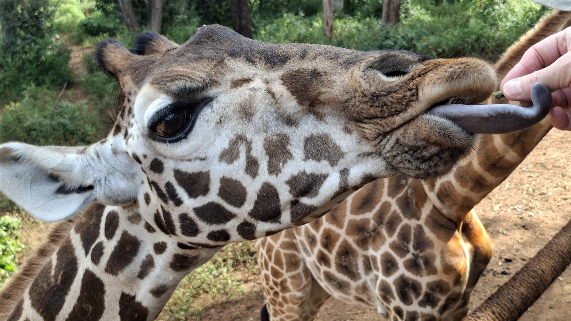 Being in Africa means looking at animals, of course. Over the next couple of days I went to two places. The first was a centre which housed Rothschild Giraffes. These are becoming endangered because of habitat loss. What makes them different is that they have no markings on their lower legs. I bought some food to feed them with. They stick out their long, purple tongue and you place the food on it. It consisted of small cattle nuts and something green. It was good fun. There were plenty of people there on a nice afternoon.