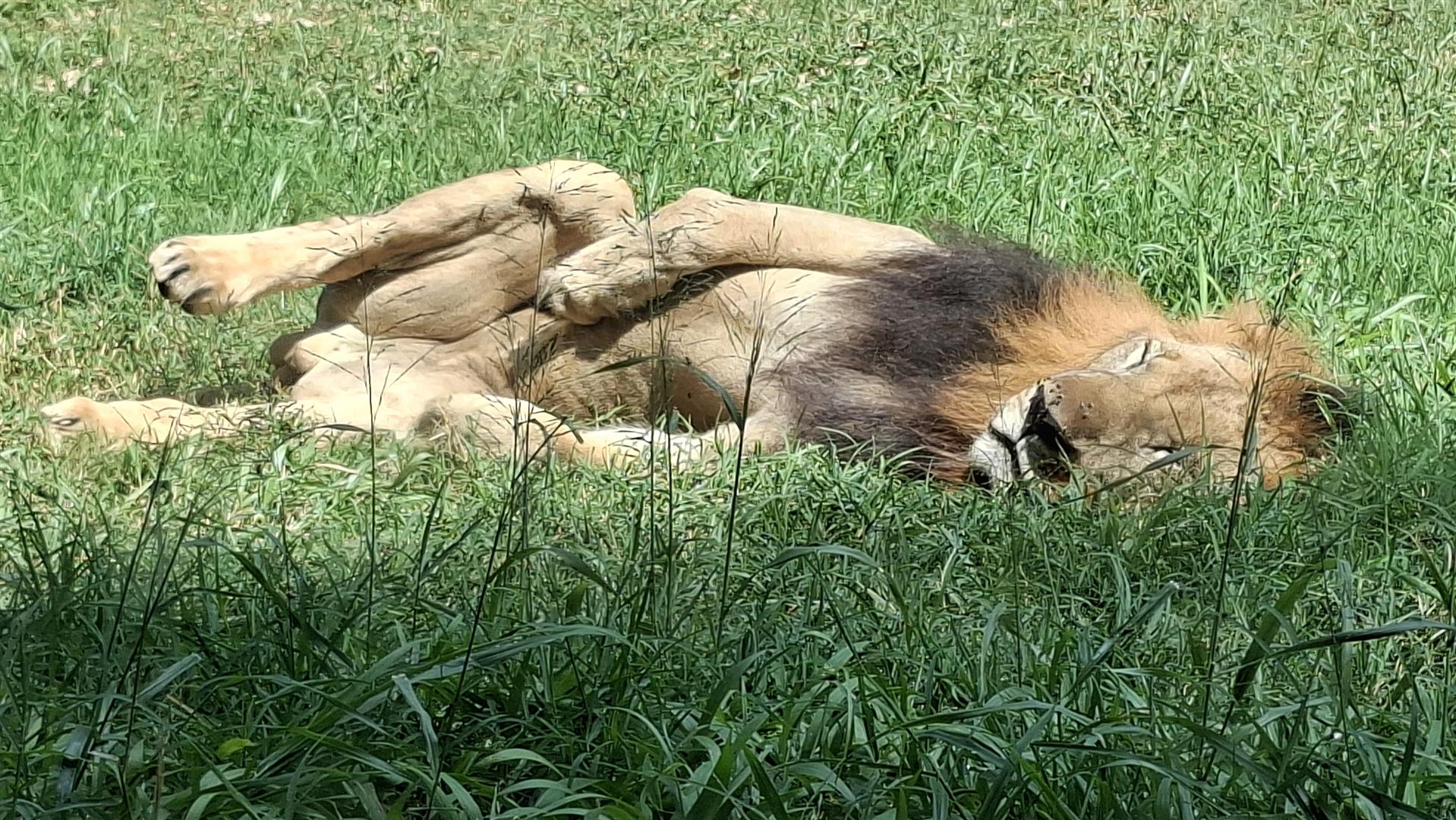 I was delighted to see a male and female lion asleep in the grass. The male was lying on his back, with his legs in the air, just like any cat. They definitely looked well fed. The other notable sight was a massive rhinoceros, with a big curly horn. There were various grazing animals to look at and an ostrich.