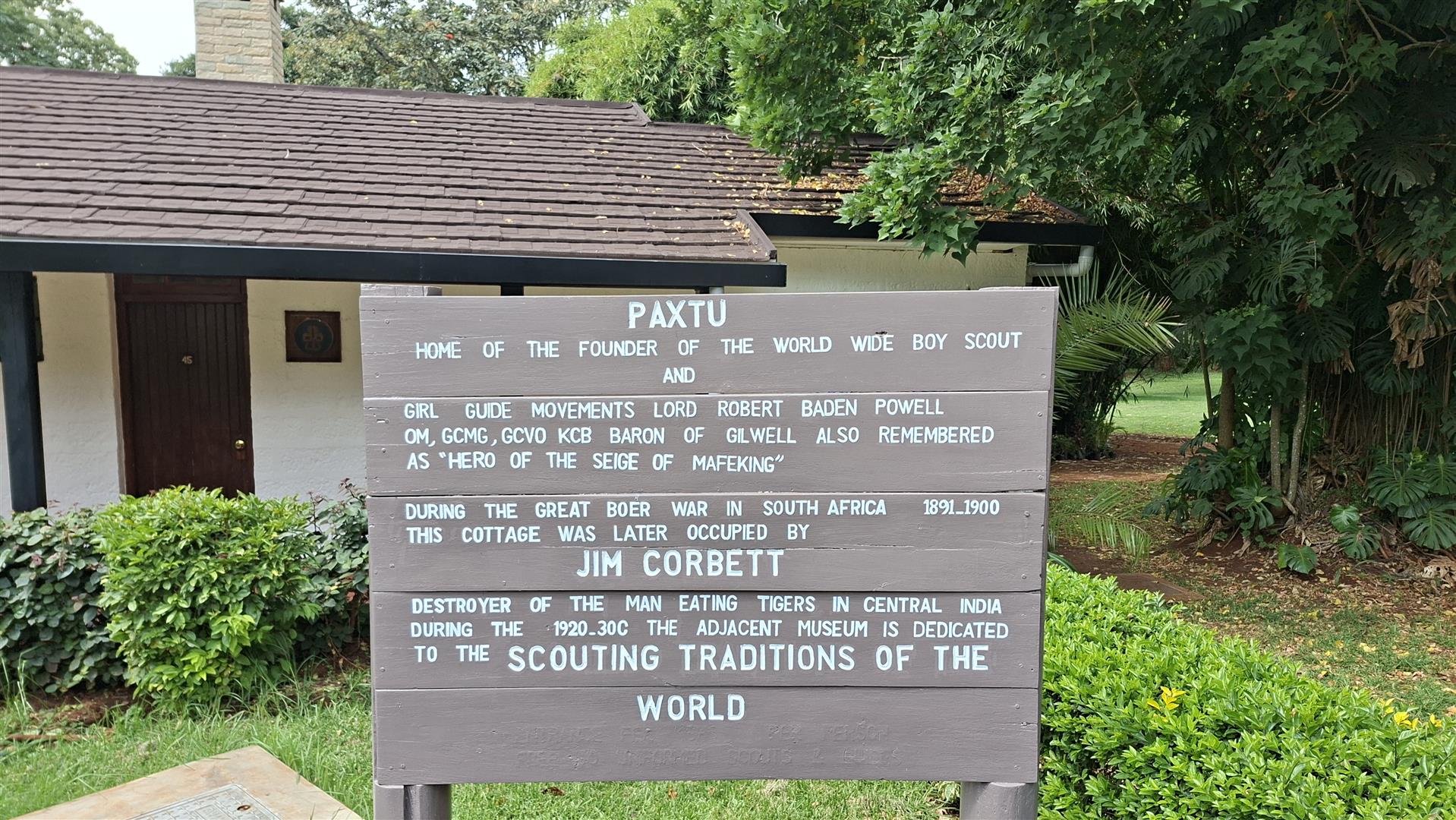I had a very interesting ride out from Nairobi to the town of Nyeri. This was where Lord Baden-Powell, the founder of the Boy Scouts movement, spent the later years of his life with his wife. He had a cottage, which was part of a larger bungalow, situated in the grounds of the Outspan Hotel. It had been built in 1926 by a friend of his. I was fascinated to learn that that the hotel was a sister to Tree Tops Hotel, where Princess Elizabeth had been staying when she learned of her father’s death.