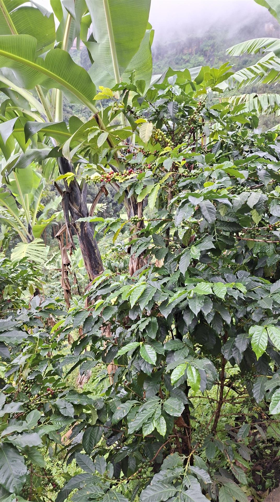 One thing I’d noticed was that coffee plants and banana plants tended to be placed alongside each other. Francis explained that the banana plants absorb and store a lot of water which thay then supply to the coffee plants in the dry season. A nicely symbiotic relationship.